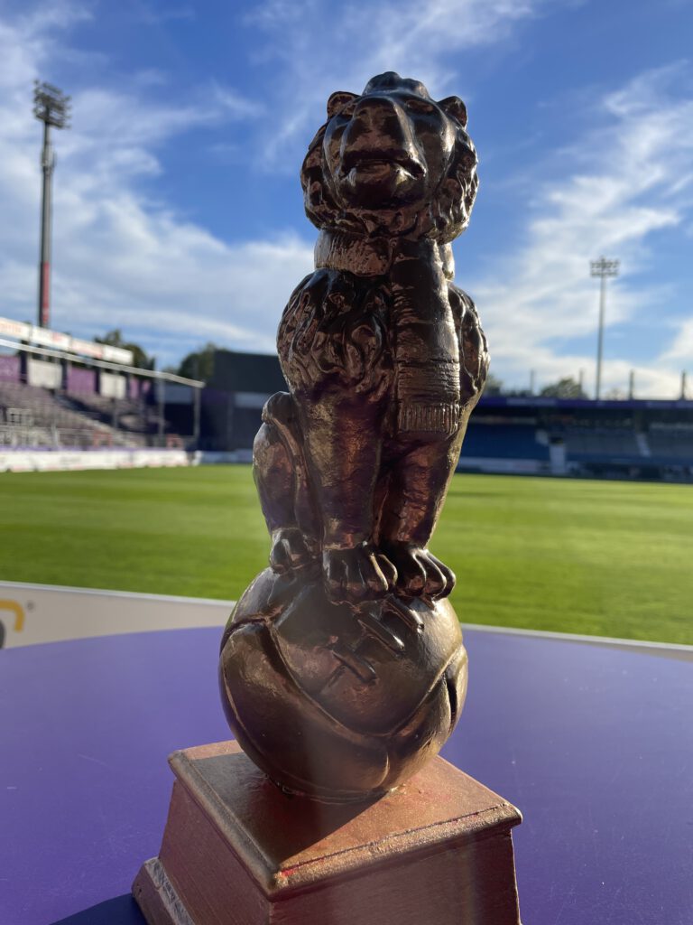 Was diesen Tag aber besonders machte, war die spürbare Atmosphäre des Teamgeists. Der neue Cheftrainer Timo Schulz war ebenso mit dabei wie sein Co-Trainer Ferhat Findik, der sich ehrgeizig und mit viel Elan in unser Quiz einbrachte. Man merkte deutlich: Hier wächst ein Team zusammen. Ein schöner Moment war auch, als Patrick Kammerbauer uns auf die letztjährige Verleihung ansprach – er hatte im vergangenen Jahr die Löwenpudel-Verleihung miterlebt, damals noch als Spieler von Gegner Verl und ohne Hintergrundwissen zu der Aktion. Dass er sich daran erinnerte, hat uns besonders gefreut. Mit VfL-Eigengewächs Isi Badjie war zudem ein Spieler zugegen, der an genau diesem Tag bereits das Löwenpudel-Aufwärmtrikot getragen und unterschrieben hatte und damit direkt Teil des guten Zwecks dahinter war. Auch das war sehr besonders in diesem Jahr und hat den Löwenpudel Freudensprünge machen lassen.